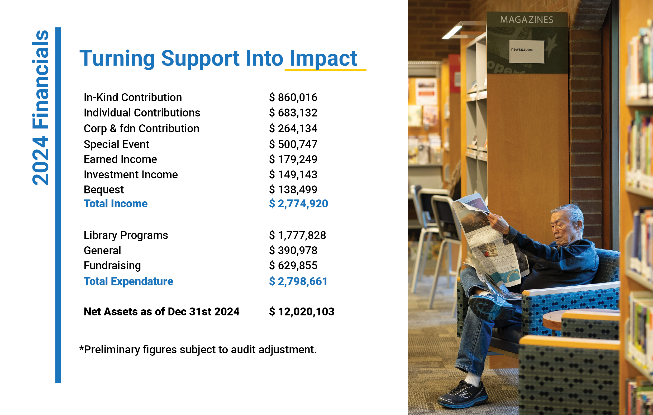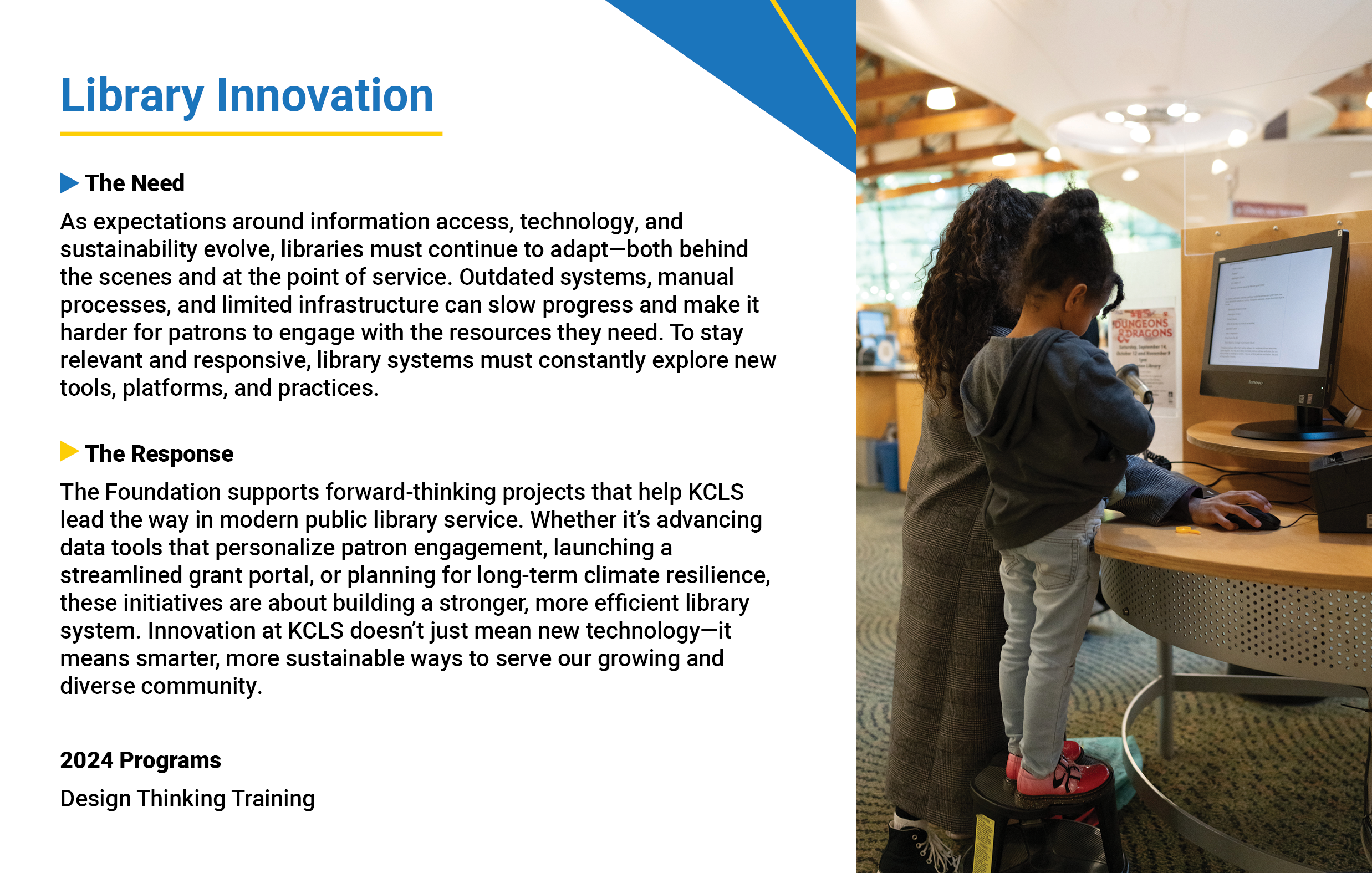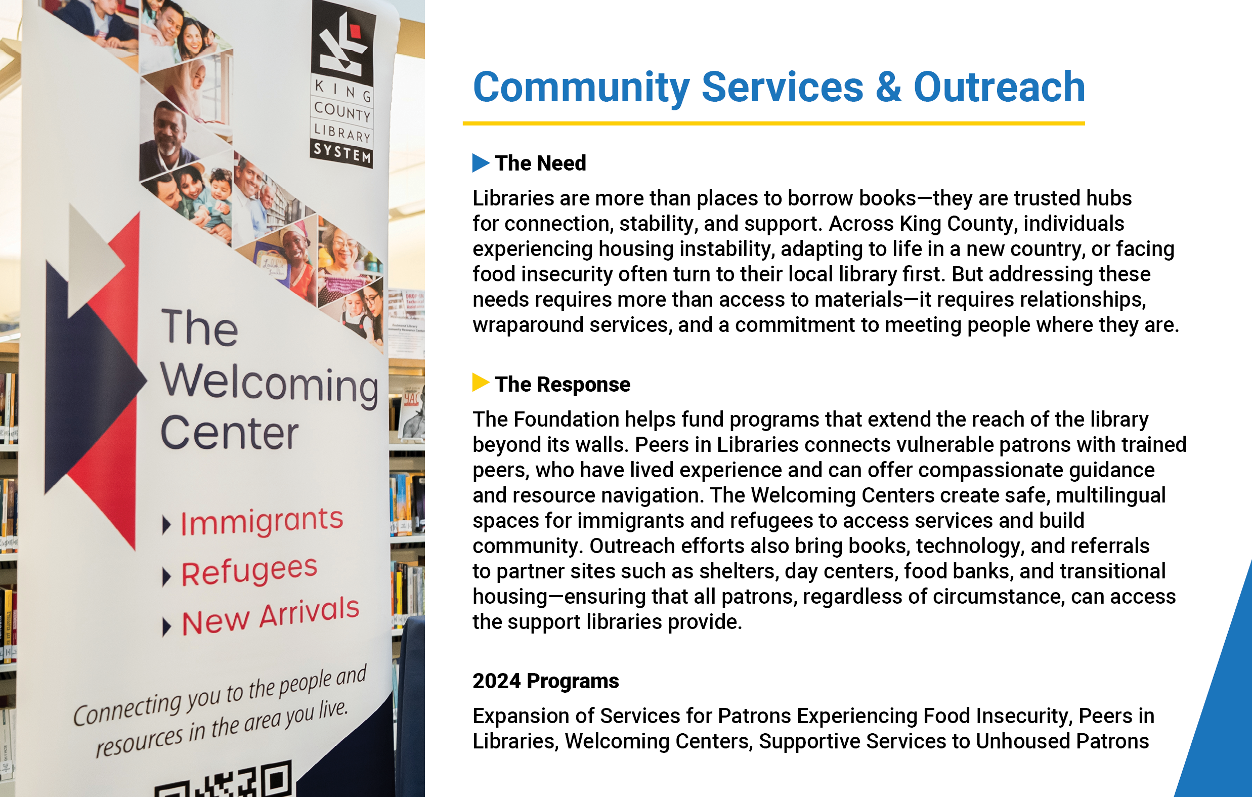 The KCLS Foundation’s Annual Report offers a snapshot of the impact our donors made possible in 2024. Inside, you’ll find financial highlights, funding priorities, and key program outcomes that show how community support helps libraries innovate, grow, and reach more people every year.